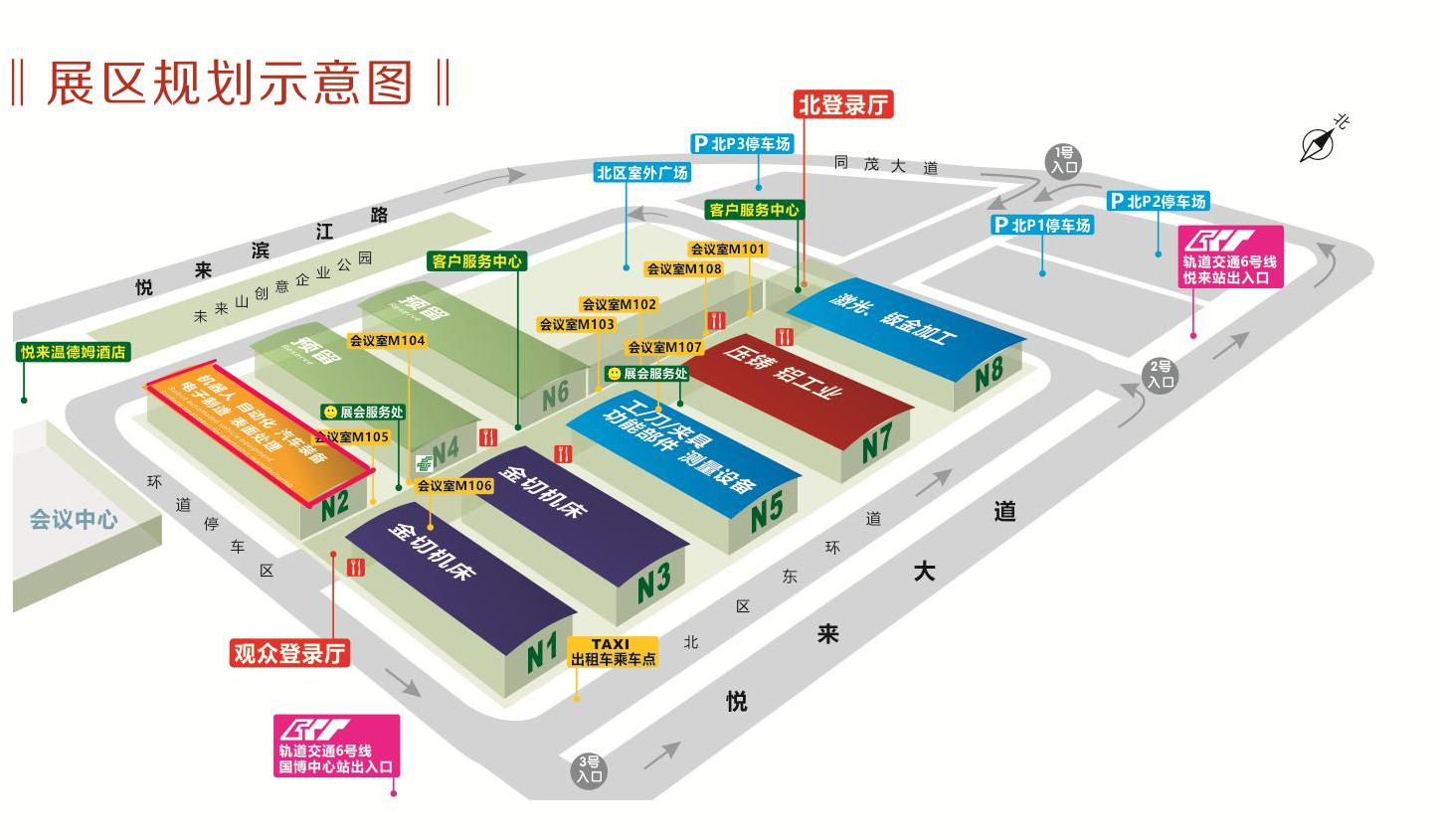 6號(hào)線:禮嘉(換)乘國(guó)博中心(支線),悅來(lái)站下(1號(hào)出口國(guó)際博覽中心北登錄廳)