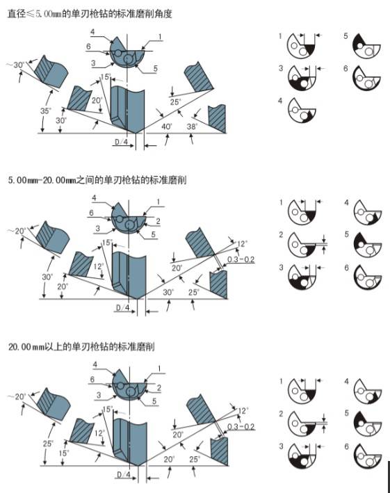 槍鉆,做為一種高效率高加工精度的孔用刀具,目前在各行各業(yè)的應(yīng)用越來越廣泛。槍鉆在制造過程中,端刃刃磨角度、油隙角、倒錐角度等,對槍鉆的使用效果影響很大,下面分類加以說明。