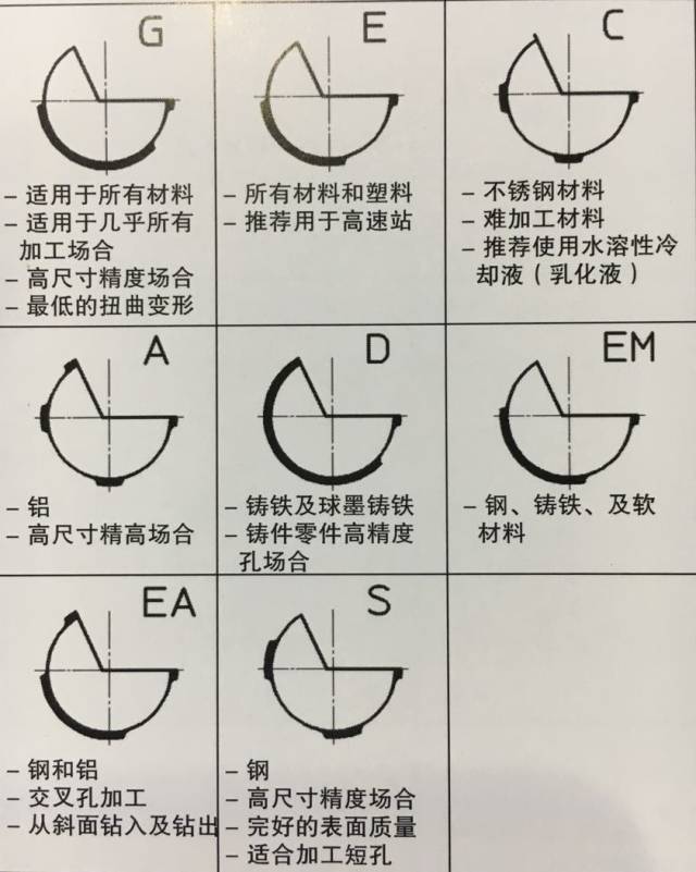 C形油隙:三點(diǎn)支撐。支撐面更小,并且,在三點(diǎn)支撐之間有儲(chǔ)油槽,可以使切削油充分的到達(dá)支撐面與孔壁之間,潤滑效果非常好,降低加工溫度,延長刀具使用壽命。